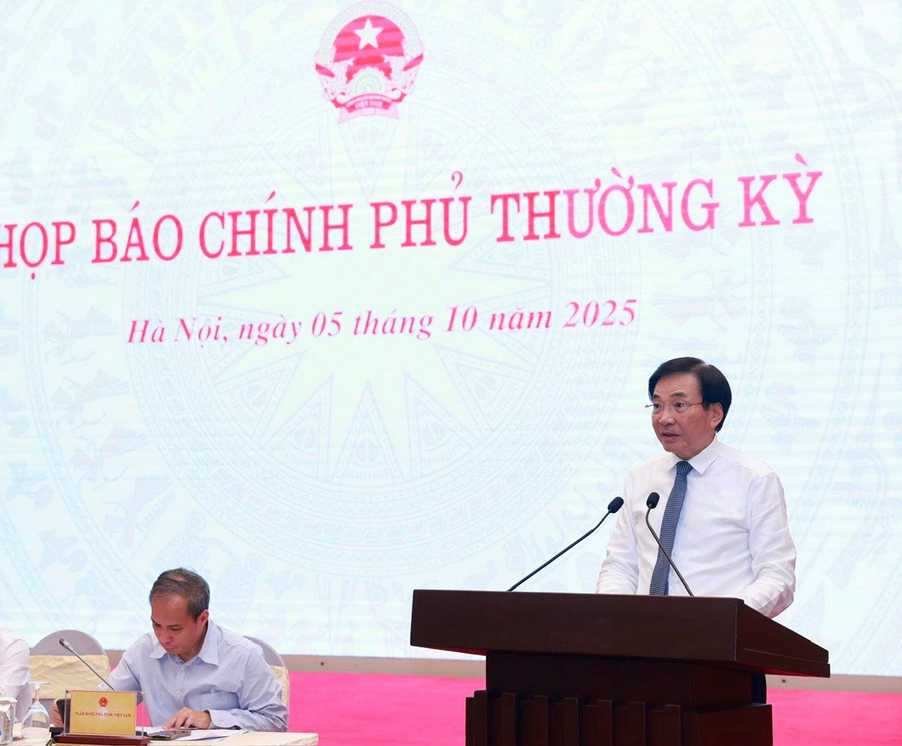 Thông tin được Bộ trưởng, Chủ nhiệm Văn phòng Chính phủ, Người phát ngôn của Chính phủ Trần Văn Sơn cho biết khi chủ trì Họp báo Chính phủ thường kỳ tháng 9/2025 vừa diễn ra chiều nay (05/10), tại Hà Nội.