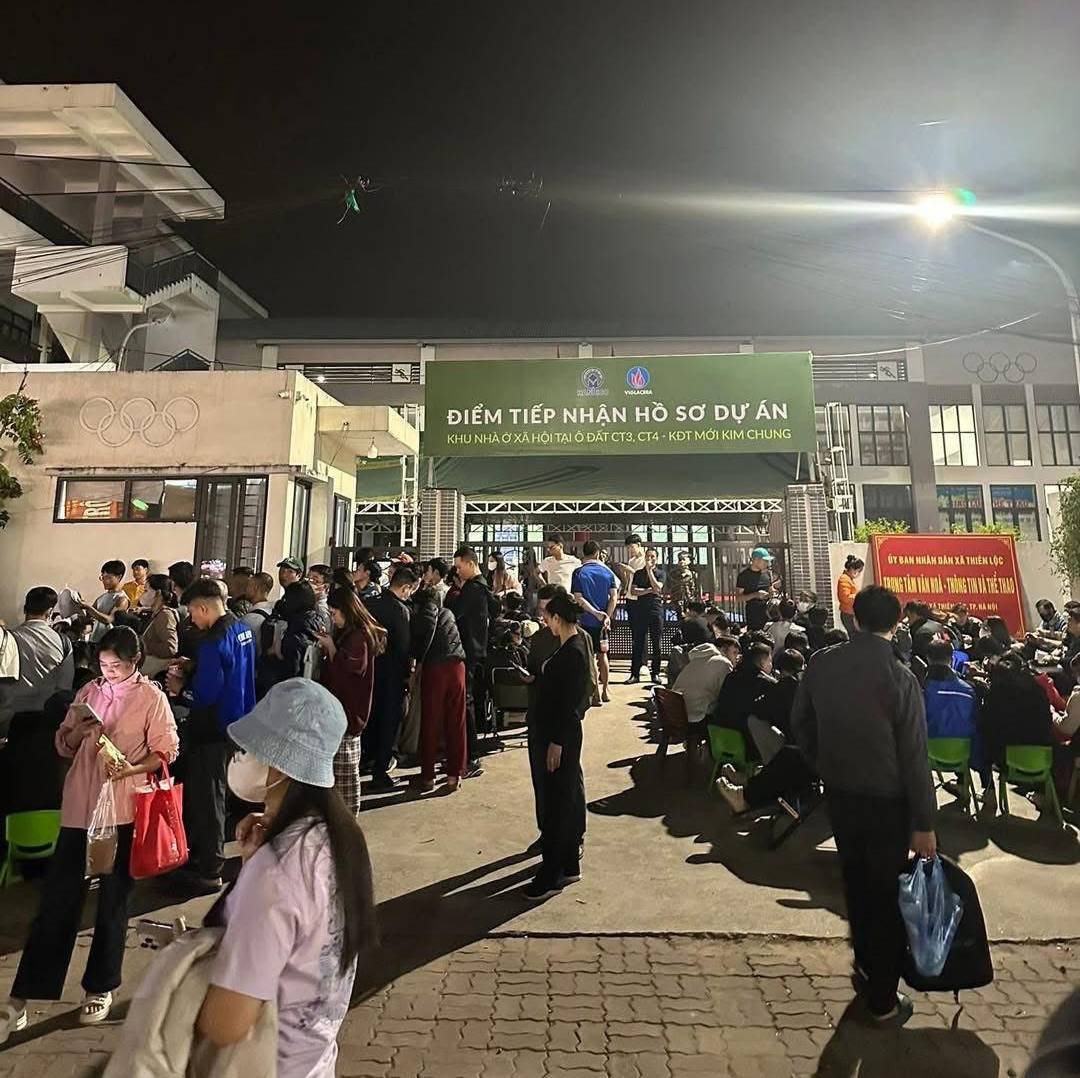 Thông tin từ nhóm Mua nhà ở xã hội CT3 Kim Chung – Đông Anh cho biết, đến 20h tối 16/11, hàng trăm người dân đã ngồi xếp hàng kín trước cửa điểm tiếp nhận hồ sơ dự án nhà ở xã hội CT3 Kim Chung.