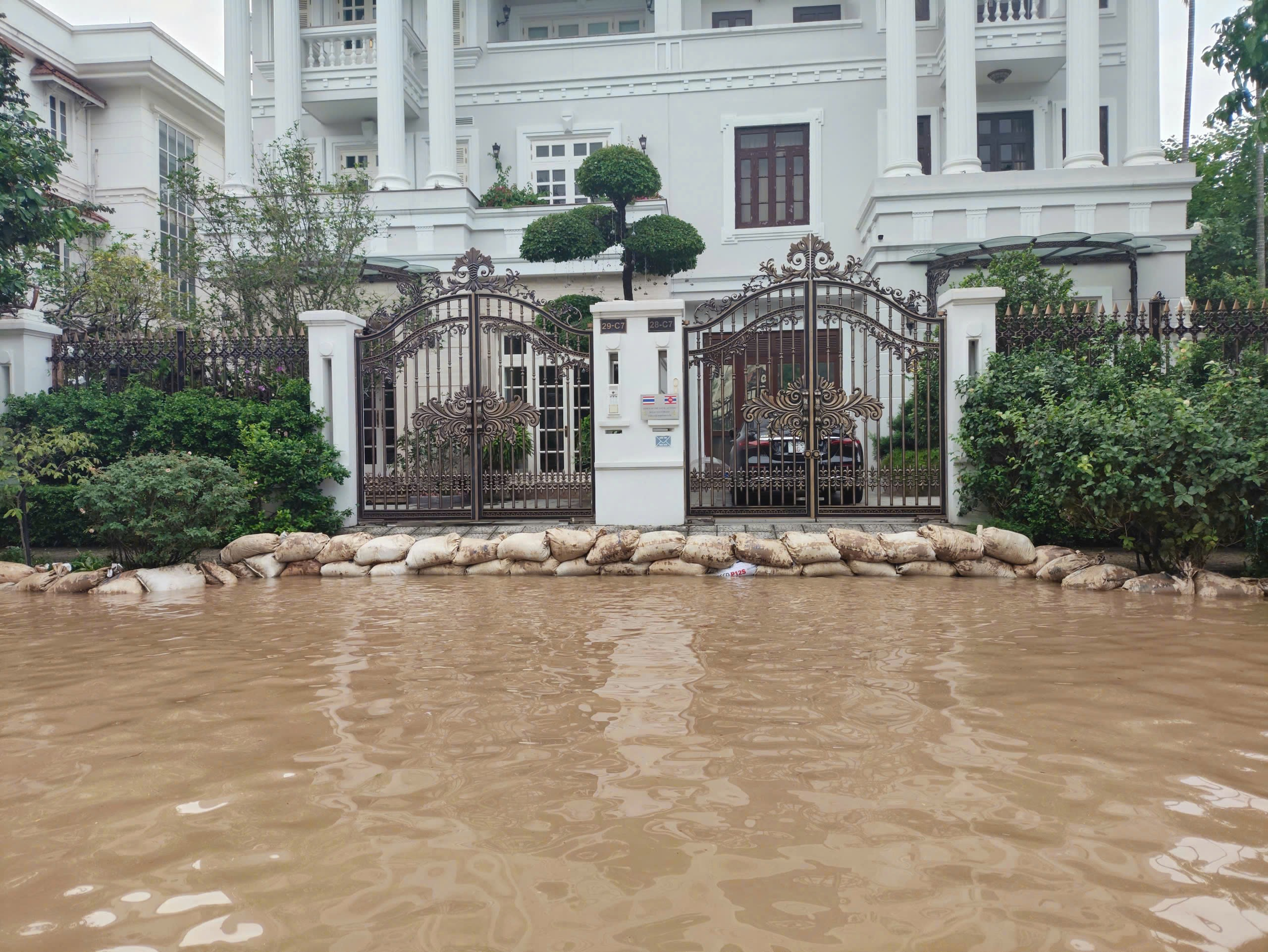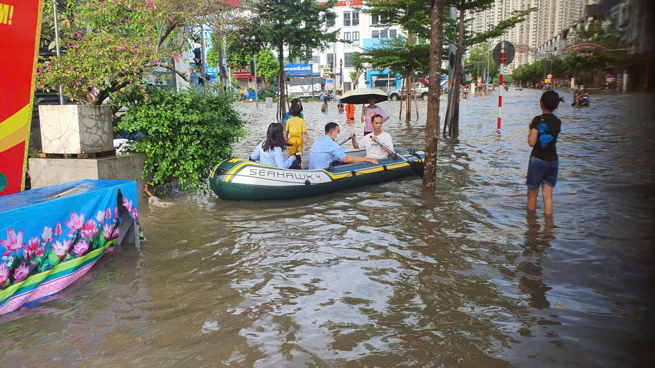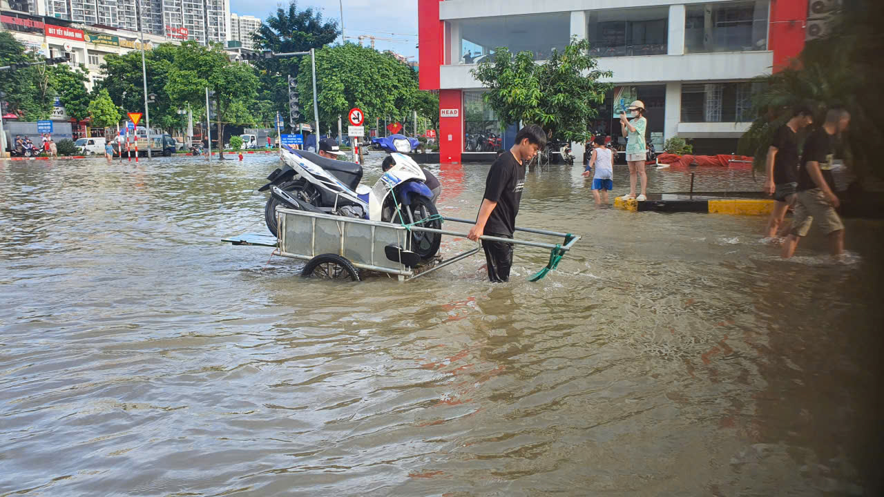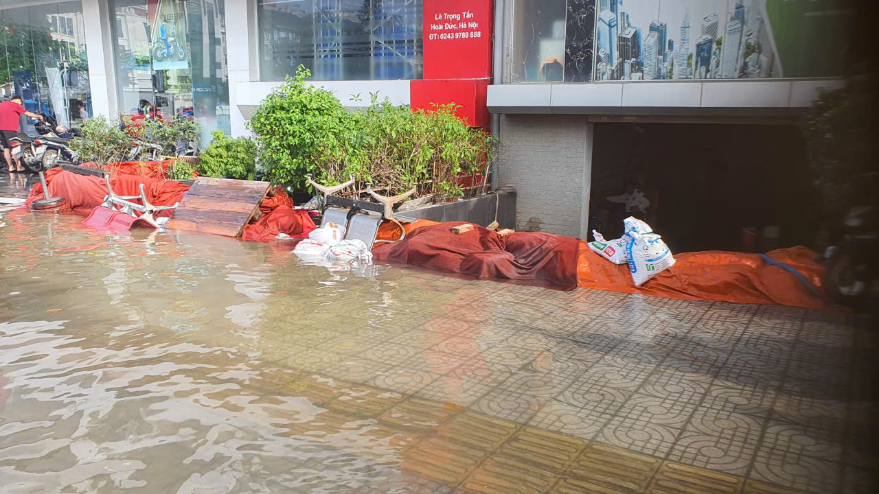 Một ngày sau trận mưa lớn kéo dài từ đêm 29-30/9/2025, tuyến đường Hoàng Tùng (xã An Khánh, Hà Nội) - nơi có một số khu đô thị xây dựng nhiều năm nay biến thành sông.