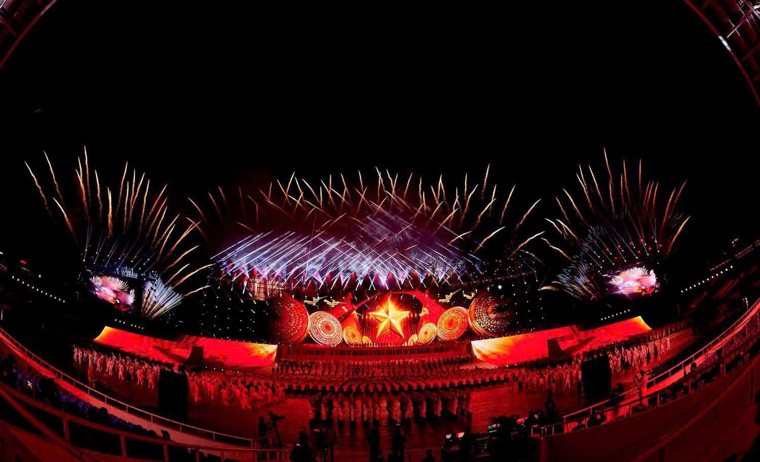 Ở phần cao trào của chương trình, những chùm pháo hoa nghệ thuật tầm cao liên tiếp bung nở, tạo nên không gian rực rỡ, hoành tráng và để lại nhiều ấn tượng sâu sắc trong lòng người xem.