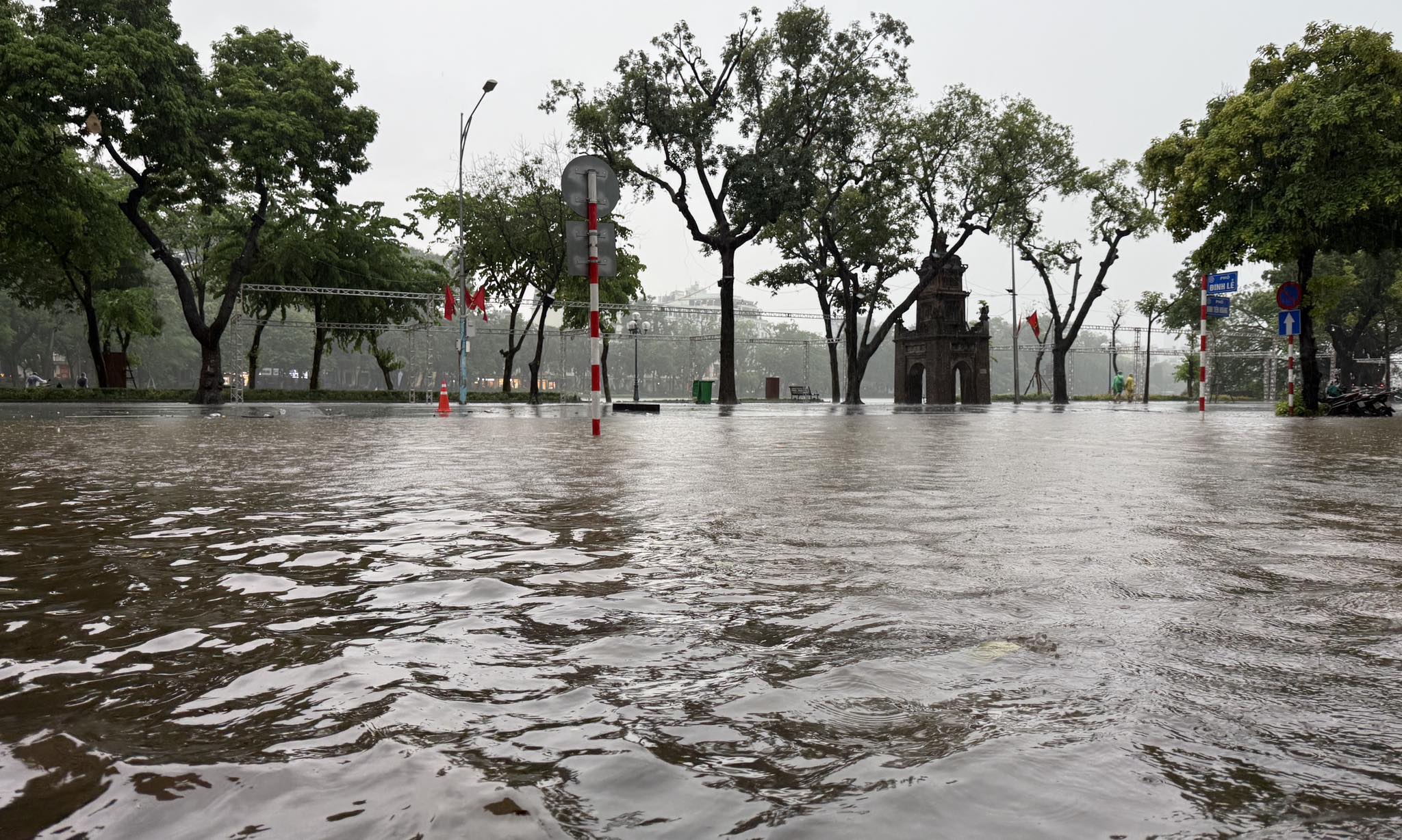 Trận mưa lớn kéo dài đến sáng 30/9 khiến nhiều tuyến phố thủ đô ngập sâu. Đáng chú ý, chỉ trong 6 giờ từ 7h đến 13h, lượng mưa tăng đột biến: phường Ô Chợ Dừa 319,6 mm, xã Vĩnh Thanh 310,5 mm, Hai Bà Trưng 195,3 mm, Tây Hồ 190 mm, Thanh Trì 166,5 mm, Thanh Xuân 165,1 mm.