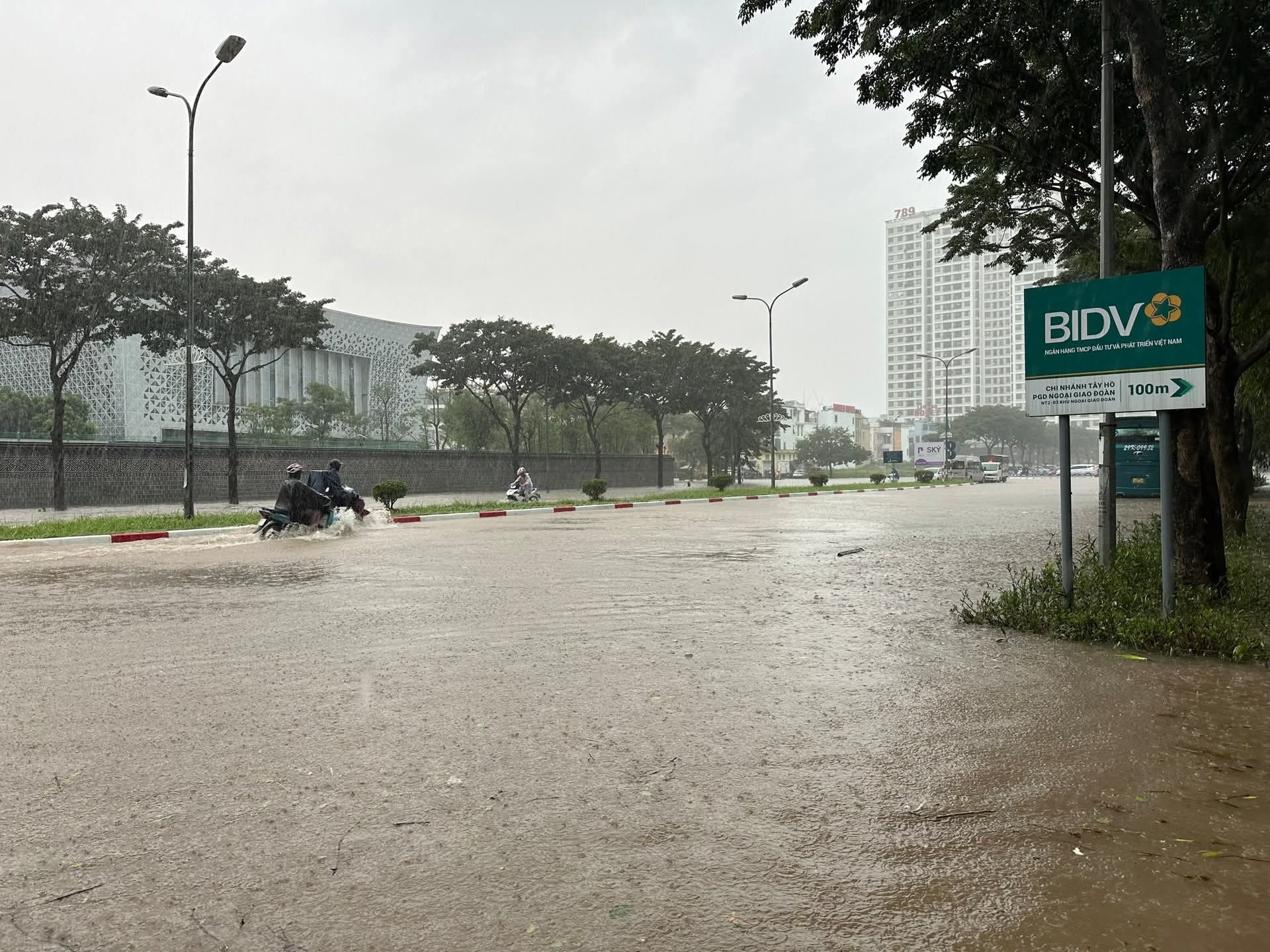 Khu vực quanh sân vận động Mỹ Đình, bến xe Mỹ Đình, các tuyến Phạm Hùng – Tôn Thất Thuyết – Lê Quang Đạo biến thành “sông”, nước sâu 30-50 cm khiến nhiều ôtô, xe máy chết máy, người dân phải dắt bộ giữa mưa lớn.